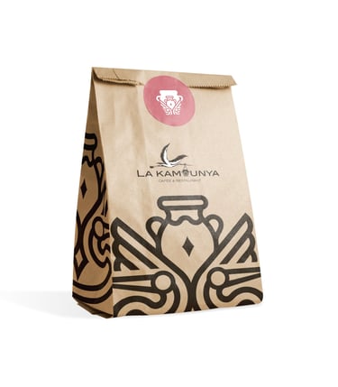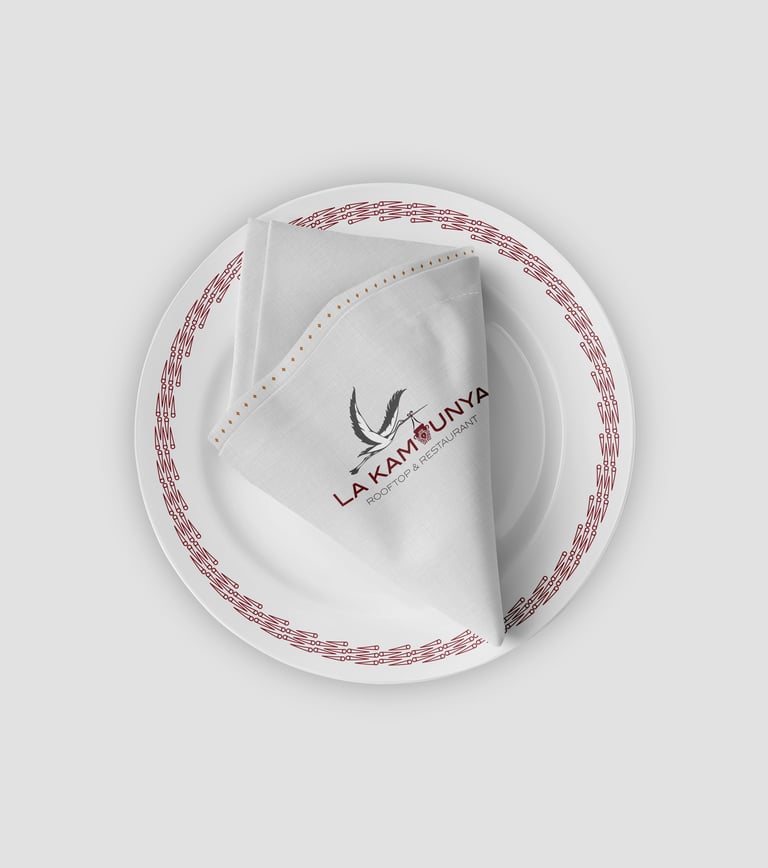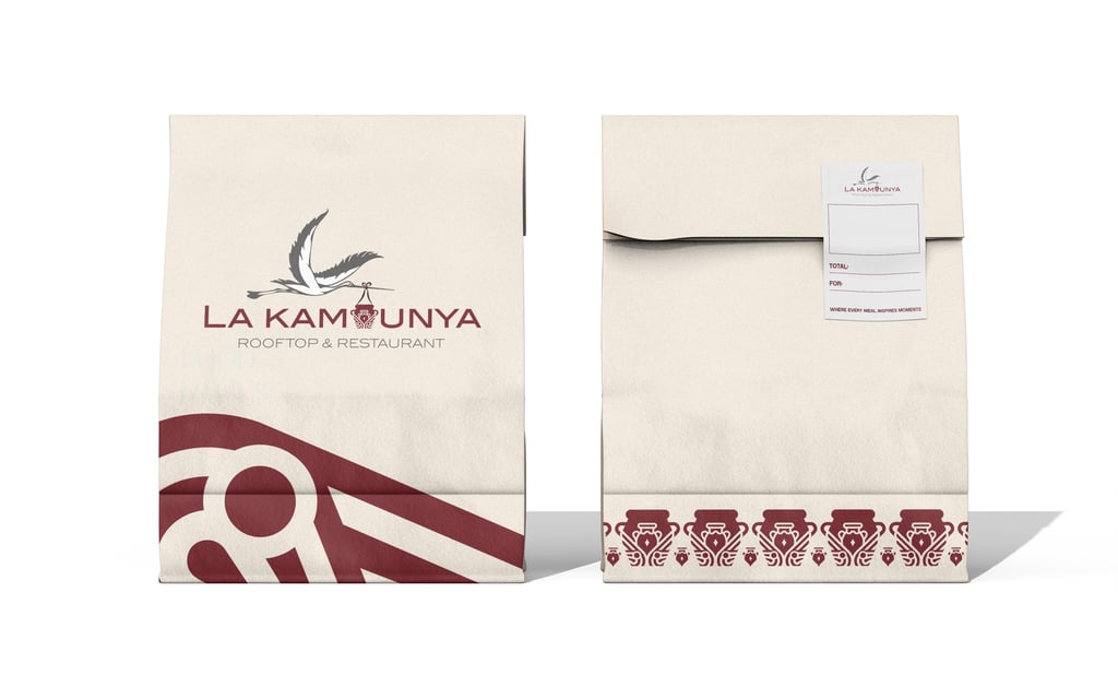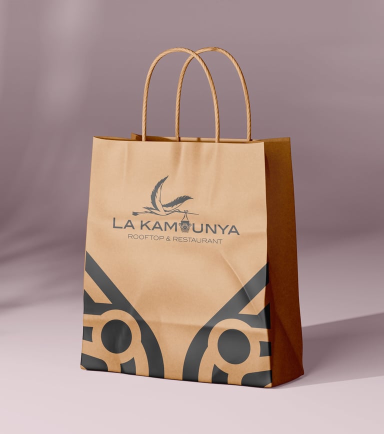 La Kamounya is a Moroccan restaurant with a unique name I created, inspired by tradition and authenticity. Its brand icon—a stork carrying a tanjia—symbolizes purity and delicacy, as if the restaurant’s finest flavors are delivered straight to you.